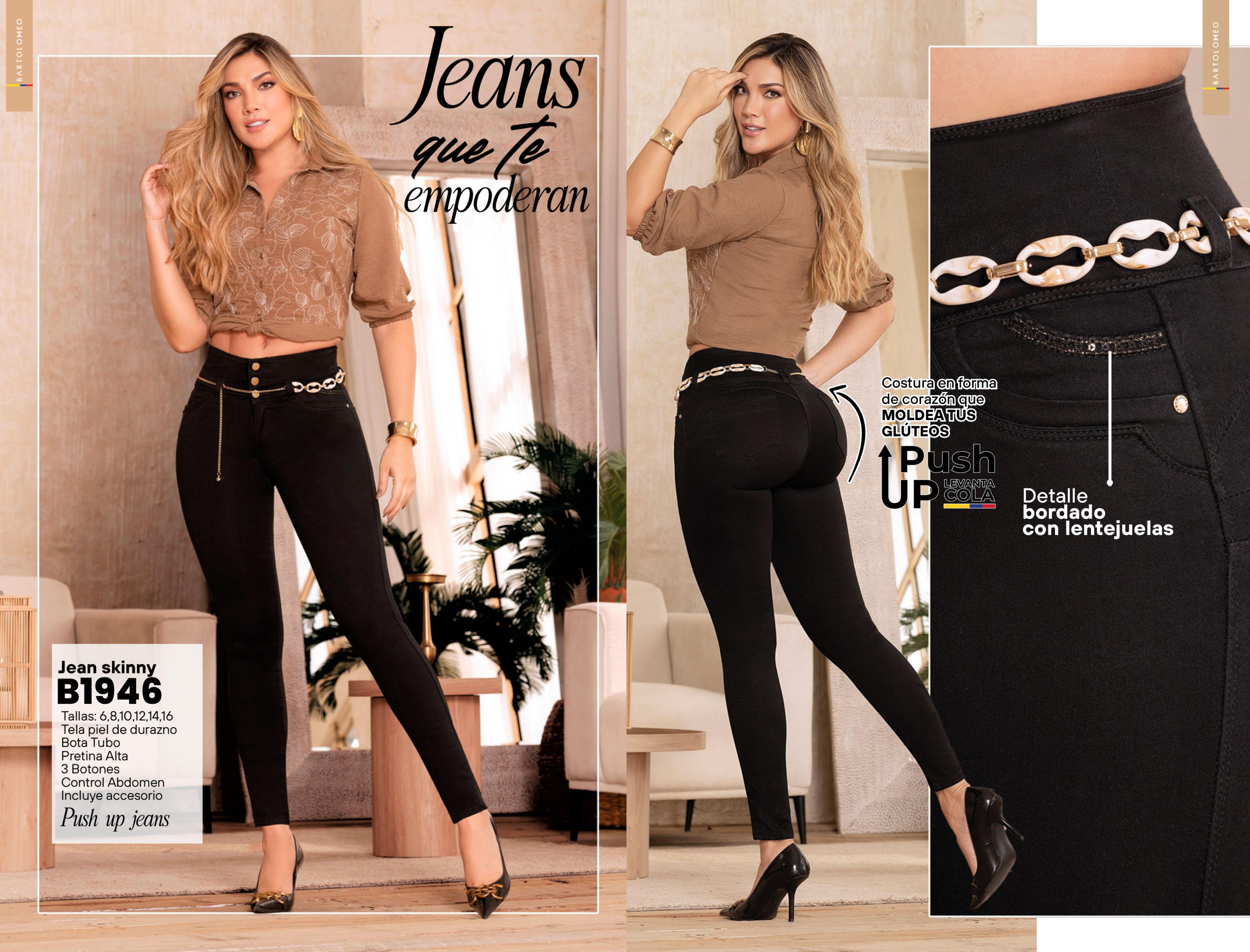 Este jean de silueta recta es ideal para lograr un look sofisticado y favorecedor. Su diseño con pretina alta de tres botones estiliza la cintura y proporciona control en el abdomen, mientras que la costura en forma de corazón y el doble realce en los bolsillos traseros moldean los glúteos con efecto push-up natural. Incluye cinturón que resalta la figura y agrega un toque elegante.