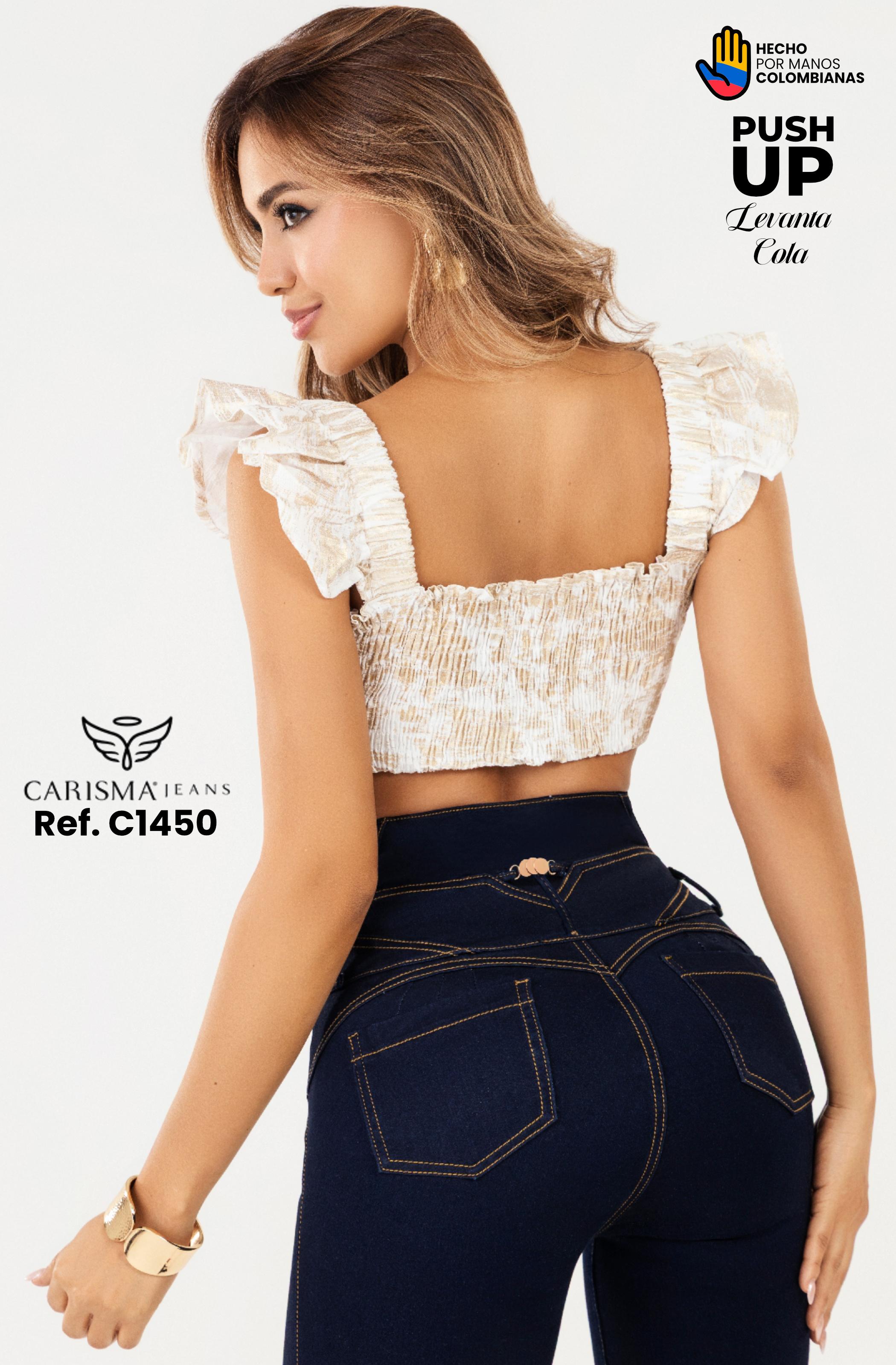 Este jean está diseñado para destacar tu figura y darle un toque de distinción a tu look. Con pretina alta, efecto push-up y exclusivos detalles en la parte frontal, es la prenda ideal para mujeres que aman la moda con personalidad.